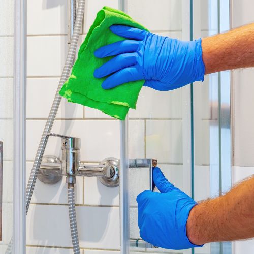 - Scrub and disinfect toilets, tubs, and showers